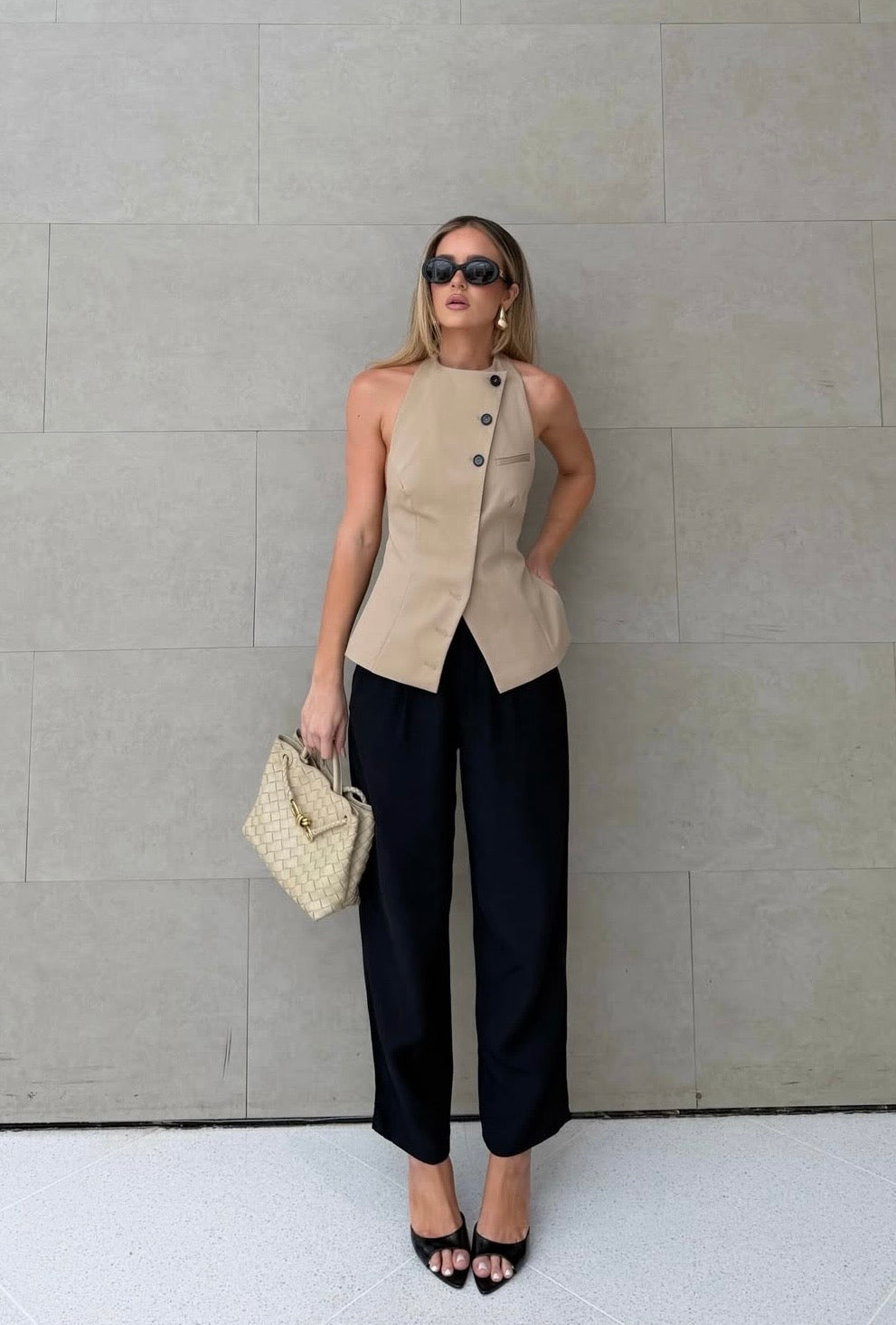 Set "Metropolitan Halter": Top con Espalda Descubierta y Pantalón Recto